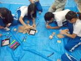 4年生がしそう森林の探検隊事業のひとつとして「木工教室」を実施しました。県立山の学校の生徒から、子どもたちは「木を伐採する理由」を教わったり、木材を使ったペン立ての作り方を教えてもらいました。