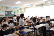 11月7日に兵庫教育大学大学院の谷田教授を講師にむかえ、「対話を軸にした、子どもが主体的に参加する授業づくり」をテーマに、3年生が道徳の授業を行いました。ワークシートに自分の考えをまとめ、友だちに伝えていました。