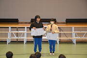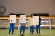 5年生が「みんなの学校をもっとよりよいものにしよう」ということで、「あいさつをしよう」「トイレのスリッパをそろえよう」「ホールをきれいに使おう」などと、みんなに呼びかけてくれました。